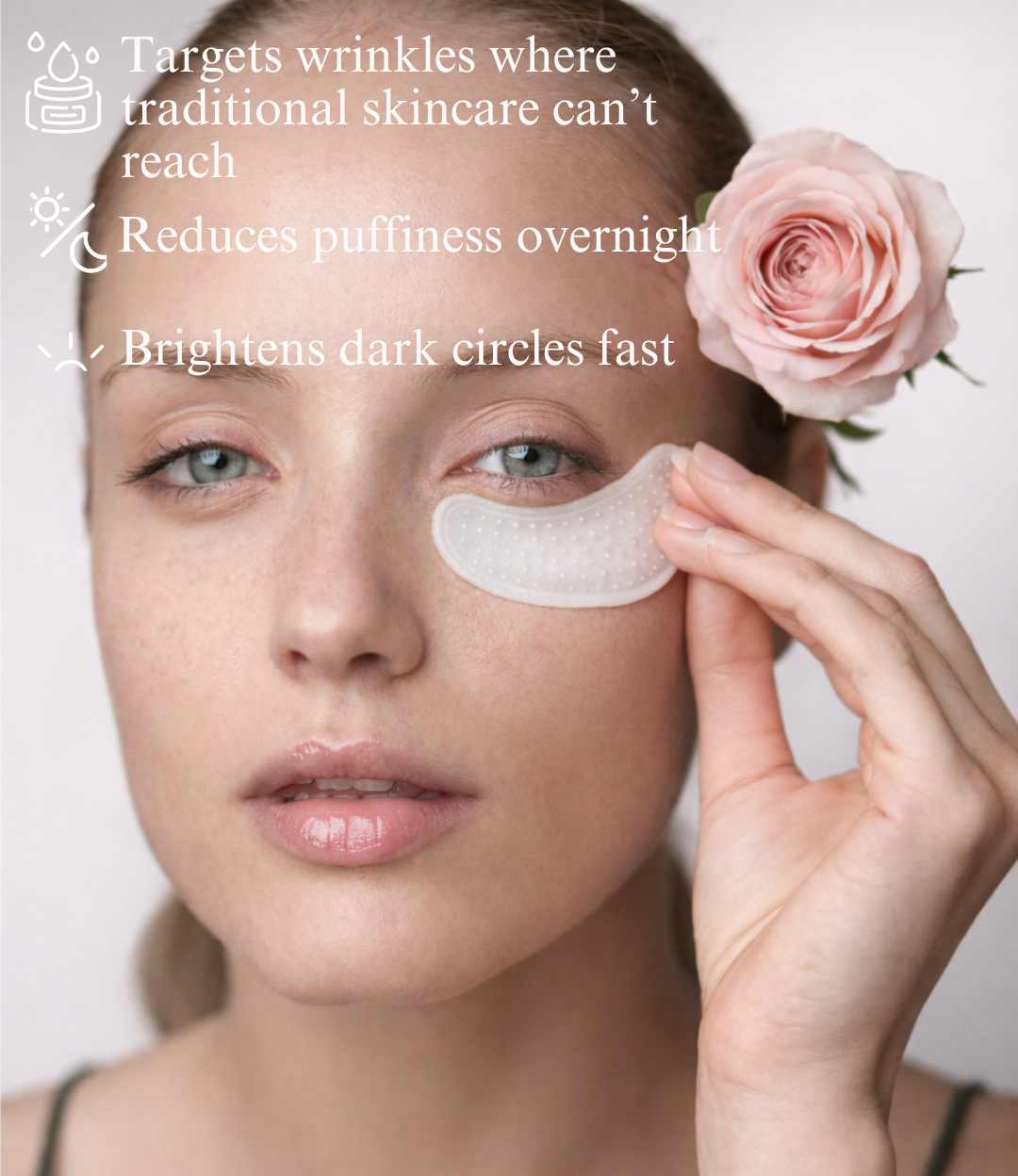 Our patches use ultra-fine dissolving micro-cones made from skin-loving ingredients. When applied, these micro-needles gently melt into the skin’s surface, helping deliver active ingredients directly where they’re needed. Supporting hydration, smoothing, and a more refreshed under-eye appearance.